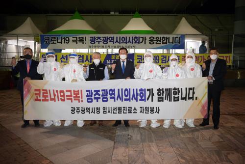 [½Åµ¿¾Æ¹æ¼Û=±èÀçÂù ±âÀÚ]±¤ÁÖ±¤¿ª½Ã´Â ±¤ÁÖ±¤¿ª½ÃÀÇ»çȸ°¡ 28ÀÏ ½Ãû ¾ß¿ÜÀ½¾Ç´ç ¼±º°°Ë»ç¼Ò¿¡¼­ ÀÇ·á ÀÚ¿øºÀ»ç Ȱµ¿¿¡ ³ª¼¹´Ù°í ¹àÇû´Ù. ÀÇ»çȸ¸¦ ´ëÇ¥ÇØ ¹ÚÀ¯È¯ ±¤ÁÖ½ÃÀÇ»çȸÀå°ú ÃÖÁ¤¼· ¼ö¼®ºÎȸÀå µî 5¸íÀº ¹ã´ÊÀº ½Ã°£±îÁö ½Ãû ¼±º°°Ë»ç¼Ò¸¦ ãÀº ½Ã¹ÎµéÀ» »ó¡¦