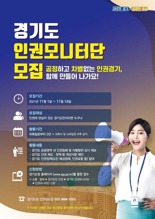 [½Åµ¿¾Æ¹æ¼Û°æ±â´º½º=¹èÁöÀ± ±âÀÚ] °æ±âµµ°¡ ¡®Á¦2±â °æ±âµµ¹Î ÀαǸð´ÏÅÍ´Ü¡¯À» ±âÁ¸ 30¸í¿¡¼­ 1õ ¸íÀ¸·Î ´ëÆø È®´ëÇϰí, µµ¹Î 666¸íÀ» °ø°³ ¸ðÁýÇÕ´Ï´Ù. °æ±âµµ ÀαǸð´ÏÅÍ´ÜÀº °ø°ø¿µ¿ª ÀαÇÄ§ÇØ, Â÷º°ÇàÀ§ Á¦º¸¿Í À뱂 ÁÖ¿äÁ¤Ã¥ Âü¿© ¹× È«º¸ ¿ªÇÒÀ» À§ÇØ Áö³­¡¦