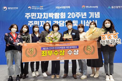 [½Åµ¿¾Æ¹æ¼Û=±èÀçÂù±âÀÚ] ±¤ÁÖ ±¤»ê±¸(±¸Ã»Àå ±è»ïÈ£) Ç®»Ñ¸® ÁÖ¹ÎÀÚÄ¡ÀÇ ¿ì¼ö¼ºÀÌ ´Ù½Ã Çѹø Àü±¹ ¹«´ë¿¡¼­ Áø°¡¸¦ ¹ßÈÖÇß´Ù. Áö³­ 29ÀÏ Á¦20ȸ Àü±¹ÁÖ¹ÎÀÚÄ¡¹Ú¶÷ȸ¿¡¼­ ±¤»ê±¸¿Í ÷´Ü2µ¿ ÁÖ¹ÎÀÚġȸ(ȸÀå ÀüâÇö)°¡ °¢°¢ ÃÖ¿ì¼ö»ó°ú ´ë»óÀ» ¹Þ´Â Äè°Å¸¦ ´Þ¼ºÇÑ °Í. ¡¦