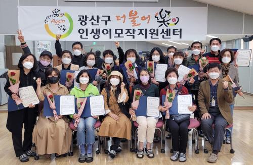 [½Åµ¿¾Æ¹æ¼Û=±èÀçÂù±âÀÚ] ±¤ÁÖ ±¤»ê±¸(±¸Ã»Àå ±è»ïÈ£) ´õºÒ¾îäÅ(¶ô)³ëÀκ¹Áö°üÀÌ ¿î¿µÇÏ´Â ÀλýÀ̸ðÀÛÁö¿ø¼¾ÅÍ¿¡¼­ »õ·Î¿î ÀλýÀ» ÁغñÇØ ¿Â ½ÅÁ߳⠽ùΠ18¸íÀÌ Á¶°æ°ü¸®»ç·Î °Åµì³µ´Ù. ±¤»ê±¸´Â ÀλýÀ̸ðÀÛÁö¿ø¼¾Å͸¦ ÅëÇØ 45~60¼¼ ÁßÀå³â ¼¼´ë¸¦ ´ë»óÀ¸·Î ÀÏ, ¹è¿ò¡¦
