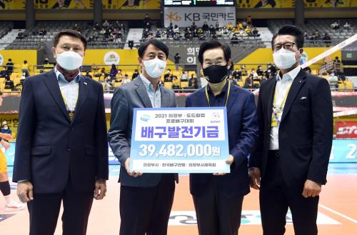 [½Åµ¿¾Æ¹æ¼Û=¾ÈÀº°æ ±âÀÚ] ÀÇÁ¤ºÎ½Ã(½ÃÀå ¾Èº´¿ë)´Â 11¿ù 6ÀÏ Çѱ¹¹è±¸¿¬¸Í¿¡¼­ ¹è±¸¹ßÀü±â±Ý 3õ948¸¸2õ¿øÀ» ±âºÎÇß´Ù°í ¹àÇû´Ù. Àü´Þ½ÄÀº ¾Èº´¿ë ÀÇÁ¤ºÎ½ÃÀå, Çѱ¹¹è±¸¿¬¸Í ½Å¹«Ã¶ »ç¹«ÃÑÀå, ÀÇÁ¤ºÎ½ÃüÀ°È¸ À̸íö ȸÀå, ÀÇÁ¤ºÎ½Ã¹è±¸Çùȸ È«¼ºÄ¥ ȸÀåÀÌ Âü¼®ÇÑ ¡¦