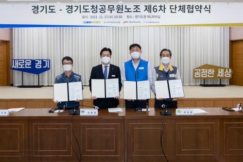 [½Åµ¿¾Æ¹æ¼Û=¾ÈÀº°æ ±âÀÚ] °æ±âµµ¿Í µµÃ» 3°³ °ø¹«¿ø³ëÁ¶°¡ Á÷Àå ³» ±«·ÓÈû ±ÙÀý°ú ¸ð¼ºº¸È£ µîÀÌ ´ã±ä ´ÜüÇù¾àÀ» ü°áÇß´Ù. À̹ø Çù¾àÀº µµÃ» ³» º¹¼ö³ëÁ¶°¡ ±³¼·Ã¢±¸ ´ÜÀÏÈ­¸¦ ÅëÇØ ÁøÇàÇÑ ÃÖÃÊ Çù¾àÀÌ´Ù. ¿Àº´±Ç °æ±âµµÁö»ç ±ÇÇÑ´ëÇà°ú °­¼øÇÏ °æ±âµµÃ»°ø¹«¿ø³ëµ¿¡¦
