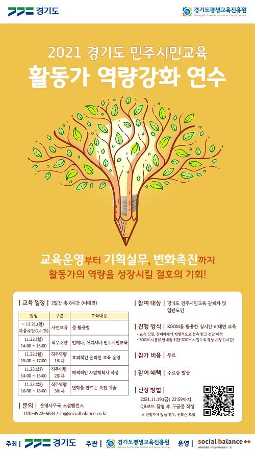 [½Åµ¿¾Æ¹æ¼Û´º½º=¹èÁöÀ± ±âÀÚ] °æ±âµµÆò»ý±³À°ÁøÈï¿øÀÌ ¿À´Â 22Àϰú 23ÀÏ ÀÌÆ²°£ µµ³» ¹ÎÁֽùα³À° Ȱµ¿°¡µéÀÇ ¿ª·® °­È­¸¦ À§ÇÑ ¿Â¶óÀÎ ¿¬¼ö¸¦ ÁøÇàÇÕ´Ï´Ù. ¿ÃÇØ ¿¬¼ö´Â ¹ÎÁֽùα³À°¿¡ ´ëÇÑ ±âº»¼Ò¾ç ±³À°°ú Äڷγª19 »óȲÀ¸·Î ±ÞÁõÇÑ ¿Â¶óÀÎ ±³À°ÀÇ Çʿ伺À» ¹Ý¡¦