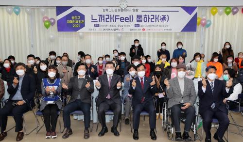 [½Åµ¿¾Æ¹æ¼Û=±èÀçÂù ±âÀÚ] ±¤»ê±¸Àå¾ÖÀκ¹Áö°ü(°üÀå ȲÇöö)Àº Áö³­ 11¿ù30ÀÏ Àå¾ÖÀΰú ºñÀå¾ÖÀÎÀÌ ÇÔ²² °ø»ýÇÏ´Â ¸¶À»°øµ¿Ã¼¸¦ ±¸ÇöÇϱâ À§ÇÑ ¡®ÇÔ²² ±×¸®´Â ¸¶À» À̾߱⠴À²¸¶ó(feel‧ÇÊ), ÅëÇ϶ó(÷×)¡¯ Çà»ç¸¦ °³ÃÖÇß´Ù°í ¹àÇû´Ù. À̳¯ Çà»ç¿¡´Â ±è»ïÈ£ ±¤»ê¡¦