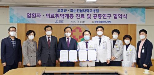 [½Åµ¿¾Æ¹æ¼Û=¹Ú±¤¿Á ±âÀÚ] °íÈﱺ(±º¼ö ¼Û±Í±Ù)Àº 12¿ù 3ÀÏ È­¼øÀü³²´ëº´¿ø(½Å¸í±Ù¿øÀå)°ú ¾ÏȯÀÚ‧ÀÇ·áÃë¾à°èÃþ Áø·á ¹× °øµ¿¿¬±¸¸¦ À§ÇÑ ¾÷¹«Çù¾àÀ» ü°áÇÏ¿´´Ù. °íÈﱺÀº 65¼¼ÀÌ»ó °í·ÉÀα¸ ºñÀ²ÀÌ 42.11%·Î °í·ÉÈ­À²ÀÌ ´ë´ÜÀÌ ³ô°í, »ç¸Á¿øÀÎÀ¸·Î´Â ¾ÏÁúȯÀÌ¡¦