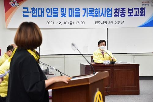 [½Åµ¿¾Æ¹æ¼Û´º½º=Á¤ÁöÀ± ±âÀÚ] ÁøÁֽô Áö³­ 10ÀÏ ¿ÀÈÄ ÁøÁÖ½Ãû »óȲ½Ç¿¡¼­ ¡®±Ù¡¤Çö´ë ¹®È­ Àι° ¹× ¸¶À» ±â·ÏÈ­ »ç¾÷¡¯ÃÖÁ¾ º¸°íȸ¸¦ ¿­¾ú½À´Ï´Ù. ±â·ÏÈ­ »ç¾÷Àº Áö¿ªÀÇ ¼ÒÁßÇÑ ÀÚ·á¿Í »îÀÇ À̾߱âµéÀÌ »ç¶óÁö±â Àü Áö¿ª ¹®È­ÀÚ»êÀ» È®º¸¡¤±â·ÏÇÏ¿© ÁøÁÖ½ÃÀÇ À¯¡¦