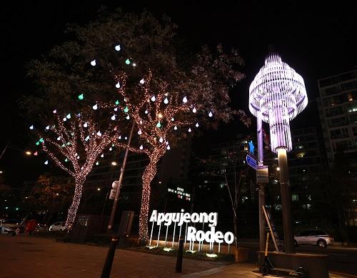 [½Åµ¿¾Æ¹æ¼Û=ÀÌÁö¿ø ±âÀÚ] ¡®±âºÐ ÁÁÀº º¯È­, ǰ°Ý ÀÖ´Â °­³²¡¯À» ½ÇÇö ÁßÀÎ °­³²±¸(±¸Ã»Àå Á¤¼ø±Õ)°¡ ¿¬¸»À» ¸Â¾Æ °ü³» ÁÖ¿ä °Å¸®, 22°³µ¿ Áֹμ¾ÅÍ ÁÖº¯, ±¸Ã» ¾Õ¸¶´ç¿¡ ´Ùä·Î¿î Á¶¸íÀ¸·Î ¡®ºûÀÇ °Å¸®¡¯¸¦ Á¶¼ºÇß´Ù. ¸ÕÀú µ¿ Áֹμ¾ÅÍ´Â °¢°¢ Ư»öÀ» »ì¸° Á¶¸íÀ¸·Î¡¦