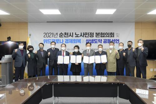 [½Åµ¿¾Æ¹æ¼Û=±è¿ëÈÆ ±âÀÚ] ¼øÃµ½Ã ³ë»ç¹ÎÁ¤ÇùÀÇȸ(À§¿øÀå Çã¼® ¼øÃµ½ÃÀå, ÀÌÇÏ ÇùÀÇȸ)´Â Áö³ 23ÀÏ ¼øÃµ»ó°øÈ¸ÀÇ¼Ò Ã¨¹ö¶ó¿îÁö¿¡¼ º»È¸ÀǸ¦ ¿°í, ³ë»ç¹ÎÁ¤ÇùÀÇȸ ¡®»ó»ýµµ¾à °øµ¿¼±¾ð¡¯Çù¾àÀ» ü°áÇÏ¿´´Ù. °øµ¿¼±¾ð¿¡´Â ¼øÃµ½Ã, ½ÃÀÇȸ, ³ëµ¿°è, °æ¿µ°è, ½Ã¹Î´Üü¡¦