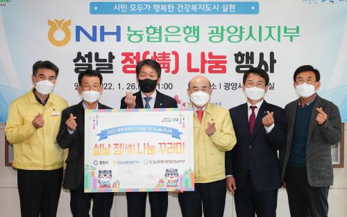 [½Åµ¿¾Æ¹æ¼Û=¹Ú±¤¿Á ±âÀÚ] NH³óÇùÀºÇà ±¤¾ç½ÃÁöºÎ°¡ Áö³­ 1¿ù 26ÀÏ ¼³ ¸íÀýÀ» ¸Â¾Æ ³ó»ê¹°²Ù·¯¹Ì 400¹Ú½º(2,000¸¸ ¿ø »ó´ç)¸¦ (Àç)±¤¾ç½Ã»ç¶û³ª´®º¹ÁöÀç´Ü¿¡ ±âŹÇß´Ù. Á¤Çöº¹ ±¤¾ç½ÃÀå, ±èÀç°æ (Àç)±¤¾ç½Ã»ç¶û³ª´®º¹ÁöÀç´Ü ÀÌ»çÀå, ÀÌâ±â NH³óÇùÀºÇà Àü³²¿µ¾÷º»ºÎÀ塦