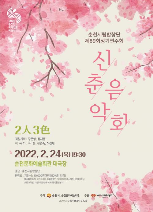 [½Åµ¿¾Æ¹æ¼Û=±è¿ëÈÆ ±âÀÚ] ¼øÃµ½Ã¸³ÇÕâ´ÜÀÌ ¿À´Â 2¿ù 24ÀÏ ¿ÀÈÄ 7½Ã 30ºÐ ¼øÃµ¹®È­¿¹¼úȸ°ü ´ë±ØÀå¿¡¼­ Á¦89ȸ Á¤±â¿¬ÁÖȸ(½ÅÃáÀ½¾Çȸ) ¡®2ÀÎ(ìÑ) 3»ö(ßä)¡¯À» ¼±º¸ÀδÙ. À̹ø ¡®2ÀÎ(ìÑ) 3»ö(ßä)¡¯¿¬ÁÖȸ´Â ¿ª·® ÀÖ´Â ½ÅÁø ÁöÈÖÀÚ 2¸íÀ» ÃÊûÇÏ¿© Çѱ¹À» ´ëÇ¥ÇÏ´Â ÀÛ¡¦