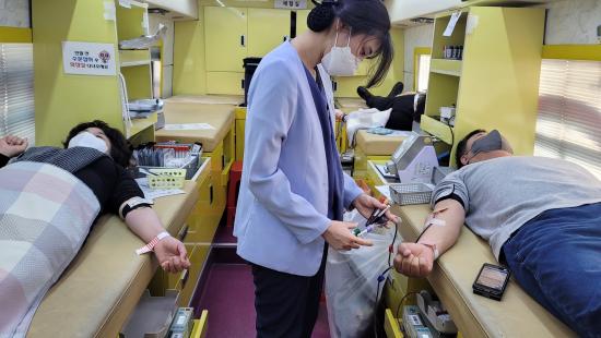 [½Åµ¿¾Æ¹æ¼Û=À̼±Á¾ ±âÀÚ] ÀåÈﱺÀº 25ÀÏ ±ºÃ»°ú º¸°Ç¼Ò ÁÖÂ÷Àå¿¡¼­ Ç÷¾× ¼ö±Þ À§±â¸¦ ±Øº¹Çϱâ À§ÇØ ¡®»ç¶û½Çõ »ý¸í³ª´® ÇåÇ÷¡¯¿¡ µ¿ÂüÇß´Ù°í ¹àÇû´Ù. ´ëÇÑÀû½ÊÀÚ»ç ±¤ÁÖ¡¤Àü³²Ç÷¾×¿ø°ú ÇÔ²² ÁøÇàÇÑ À̳¯ Çà»ç´Â Äڷγª19·Î ÀÎÇÑ Ç÷¾×¼ö±Þ³­À» ÇØ°áÇϰí ÇåÇ÷ Âü¡¦