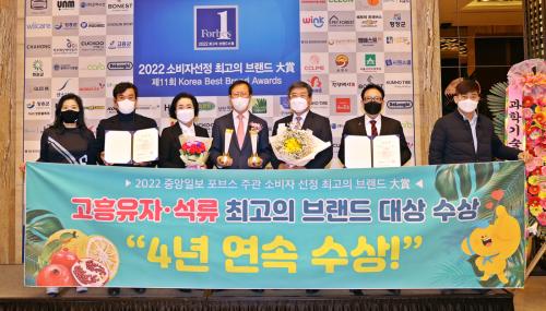 [½Åµ¿¾Æ¹æ¼Û=¹Ú±¤¿Á ±âÀÚ] °íÈﱺ(±º¼ö ¼Û±Í±Ù)Àº ´ëÇ¥ Ư»ê¹°ÀÎ °íÈïÀ¯ÀÚ¿Í °íÈï¼®·ù°¡ 3¿ù 8ÀÏ Áß¾ÓÀϺ¸ Æ÷ºê½ºÄÚ¸®¾Æ ÁÖ°ü ¡®2022 ¼ÒºñÀÚ ¼±Á¤ ÃÖ°íÀÇ ºê·£µå ´ë»ó¡¯ ½Ã»ó½Ä¿¡¼­ Áö¿ªÆ¯»ê¹° ºÎ¹® ´ë»óÀ» ¼ö»óÇß´Ù°í ¹àÇû´Ù. ÀÌ´Â 2019³âºÎÅÍ 4³â ¿¬¼Ó ¼ö»óÀ¸·Î ¸Å¡¦