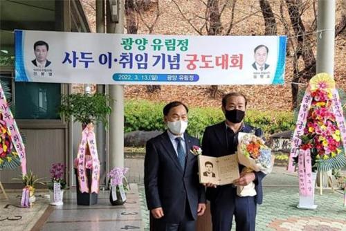 [½Åµ¿¾Æ¹æ¼Û=¹Ú±¤¿Á ±âÀÚ] ±¤¾ç½Ã À¯¸²Á¤Àº Áö³­ 13ÀÏ Áö¿ª ³» ±Ãµµ µ¿È£ÀÎ µî 70¿© ¸íÀÌ Âü¼®ÇÑ °¡¿îµ¥ Á¦46´ë »çµÎ ÀÌ¡¤ÃëÀÓ½Ä Çà»ç¿Í Á¤³» Ä£¼± ±Ãµµ´ëȸ¸¦ °¡Á³´Ù. 46´ë·Î ÃëÀÓÇÏ´Â À¯¸²Á¤ ±è¸íÈ£ »çµÎ´Â 30¿© ³âÀÇ °øÁ÷»ýȰÀ» ¸¶Ä¡°í ¼ö³â°£ ±Ãµµ¿¡ ´ëÇÑ ³²´Ù¸¥¡¦
