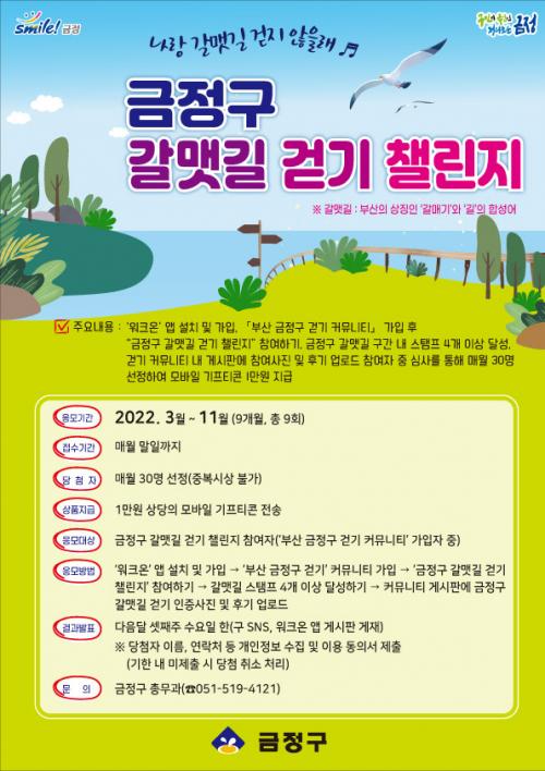 [½Åµ¿¾Æ¹æ¼Û=º¯ÀçÈ£ ±âÀÚ] ±ÝÁ¤±¸(±¸Ã»Àå Á¤¹Ì¿µ)´Â 3¿ùºÎÅÍ 11¿ù±îÁö 9°³¿ù°£¡®±ÝÁ¤±¸ °¥¸Ë±æ °È±â 縰Áö¡¯¸¦ ¿î¿µÇÑ´Ù. ¡®±ÝÁ¤±¸ °¥¸Ë±æ °È±â 縰Áö¡¯´Â Äڷγª19ÀÇ Àå±âÈ­·Î ¿ì¿ï°¨°ú »ó½Ç°¨¿¡ ºüÁø ±¸¹ÎµéÀÇ ºñ´ë¸é °È±â Ȱ¼ºÈ­¿Í °Ç°­ ÁõÁøÀ» À§ÇØ ½ÃÇàµÇ´Â ¡¦