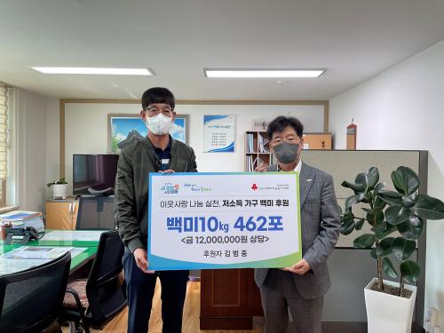 [½Åµ¿¾Æ¹æ¼Û=±è±â³² ±âÀÚ] ¿©¼ö½Ã ¼Ò¶ó¸é¿¡ °ÅÁÖÇÏ´Â »ç¶ûÀÇ Ãµ»ç, ±è¹üÁß(ÀÚ¿µ¾÷)¾¾°¡ Áö¿ªÀÇ ¾î·Á¿î ÀÌ¿ôµéÀ» À§ÇØ ½á´Þ¶ó¸ç ¹é¹Ì 10§¸ 462Æ÷(1,200¸¸¿ø »ó´ç)¸¦ ¿©¼ö½Ã¿¡ Àü´ÞÇß´Ù. ±è¾¾ ºÎºÎ´Â ¼Ò¶ó¸é¿¡¼­ ¶¥»ç¶û³ó»ê(Åðºñ µî ÆÇ¸Å¾÷)À» ¿î¿µÇϸç, 10³â ÀüºÎÅÍ¡¦