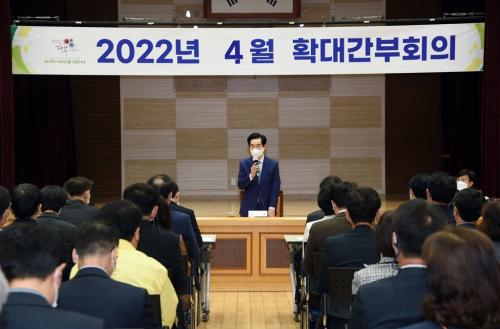 [½Åµ¿¾Æ¹æ¼Û=¾ÈÀº°æ ±âÀÚ] ÀÇÁ¤ºÎ½Ã(½ÃÀå ¾Èº´¿ë)´Â 4¿ù 7ÀÏ ¿ÀÀü 8½Ã¿¡ 4¿ù È®´ë°£ºÎȸÀǸ¦ ÀÇÁ¤ºÎ½Ãû ´ë°­´ç¿¡¼­ °³ÃÖÇß´Ù. À̳¯ ȸÀÇ´Â ¾Èº´¿ë ÀÇÁ¤ºÎ½Ã½ÃÀå ÁÖÀç·Î ºÎ½ÃÀå, ±¹¡¤´Ü¡¤¼ÒÀå ¹× ±Ç¿ª ±¹Àå, ºÎ¼­Àå µî 90¿© ¸íÀÌ Âü¿©ÇØ ±¹º° Çö¾È»çÇ׿¡ ´ëÇØ °øÀ¯ÇÏ¡¦