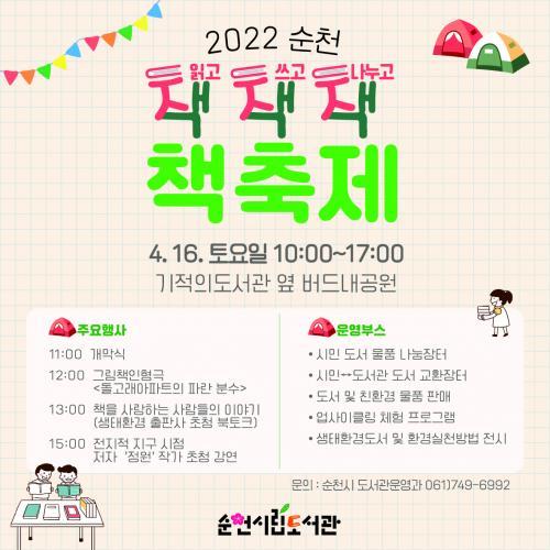 [½Åµ¿¾Æ¹æ¼Û=±è¿ëÈÆ ±âÀÚ] ¼øÃµ½Ã´Â ¿À´Â 12ÀϺÎÅÍ 18ÀϱîÁö Á¦58ȸ µµ¼­°üÁÖ°£À» ¸Â¾Æ <2022 ¼øÃµ Ã¥¡¤Ã¥¡¤Ã¥ Ã¥ÃàÁ¦>¸¦ Æ÷ÇÔÇÏ¿© ´Ù¾çÇÑ µ¶¼­¹®È­ Çà»ç¸¦ ¸¶·ÃÇß´Ù. ¼øÃµ½Ã¸³µµ¼­°ü 8°³°ü¿¡¼­ ´Ù¾çÇÑ Ä³¸¯ÅÍ ÀÇ»óÀ» ºô·Á ÀԾ ¼ö ÀÖ´Â ¡®¿À´ÃÀº ³»°¡ Ã¥ ¼Ó ÁÖÀΡ¦