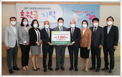 [½Åµ¿¾Æ¹æ¼Û=¹Ú±¤¿Á±âÀÚ] (Àç)±¤¾ç½Ã¾î¸°À̺¸À°Àç´ÜÀº Áö³­ 9ÀÏ Á¤Çöº¹ ±¤¾ç½ÃÀå, °­¿ëÀç Àç´Ü »óÀÓÀÌ»ç, ±âŹÀÚ µî 10¿© ¸íÀÌ Âü¼®ÇÑ °¡¿îµ¥ ÈÄ¿ø±Ý ±âʽÄÀ» °¡Á³´Ù°í ¹àÇû´Ù. À̳¯ ±âŹ½Ä¿¡´Â ±¤¾ç½Ã »õ¸¶À»±Ý°í(ÀÌ»çÀå ±èÀç¼÷)¿¡¼­ ¿µ‧À¯¾Æ±â ¾î¸°À̸¦ À§ÇÑ¡¦