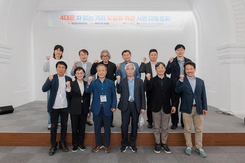[½Åµ¿¾Æ¹æ¼Û´º½º=¼®Àç¸í ±âÀÚ] ȯ°æÀç´ÜÀº 9ÀÏ ¿ÀÈÄ 2½Ã ¼­¿ï½Ã¹Îû ÅÂÆòȦ¿¡¼­ ¡®¼­¿ï µµ½ÉÀÎ ±¤È­¹®¿¡¼­ ¿ë»ê±îÁö Â÷ ¾ø´Â °Å¸® ½ÇÇö ¸ð»ö¡¯À» ÁÖÁ¦·Î ¡®4´ë¹®¾È Â÷ ¾ø´Â °Å¸® µµÀÔÀ» À§ÇÑ ½Ã¹Î ´ëÅä·Ðȸ¡¯¸¦ °³ÃÖÇß½À´Ï´Ù. À̳¯ Åä·Ðȸ´Â 4´ë¹®¾È Â÷ ¾ø´Â °Å¸® Ãß¡¦