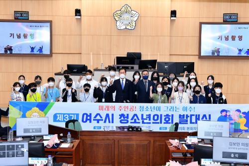 [½Åµ¿¾Æ¹æ¼Û=±è±â³² ±âÀÚ] Áö¿ª û¼Ò³âµéÀÌ ÇÊ¿äÇÑ Á¤Ã¥À» Á÷Á¢ Á¦¾ÈÇÏ°í ¹ÎÁÖÁÖÀÇ ÀÇ»ç°áÁ¤À» üÇèÇÒ ¼ö ÀÖ´Â ±³À°ÀÇ ÀåÀÎ ¿©¼ö½Ã û¼Ò³âÀÇȸ Á¦3±â°¡ Ãâ¹üÇß´Ù. ¿©¼ö½ÃÀÇȸ(ÀÇÀå Àüâ°ï)´Â Áö³­ 13ÀÏ Á¦3±â ¿©¼ö½Ã û¼Ò³âÀÇ¿ø ¹ß´ë½ÄÀ» ¿­¾î 26¸íÀÇ Ã»¼Ò³âÀÇ¿ø¡¦