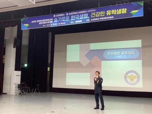 [½Åµ¿¾Æ¹æ¼Û=±èÀç¼±±âÀÚ] ¼øÃµ°æÂû¼­(¼­Àå ÃÖº´À±)¿¡¼­´Â 5¿ù 17ÀÏ ¼øÃµ´ëÇб³ ¹®È­°­´ç¿¡¼­ ¿Ü±¹ÀÎ À¯ÇлýµéÀÌ Âü¿©ÇÏ´Â ¹üÁË¿¹¹æ±³À°À» ½Ç½ÃÇÏ¿´´Ù. À̹ø ±³À°Àº ¿Ü±¹ÀÎ À¯ÇлýÀÇ º¸À̽ºÇÇ½Ì ºÒ¹ý ¾Æ¸£¹ÙÀÌÆ® °¡´ã µî ±¹³» Á¤¼­¿¡ ¹Ì¼÷ÇÑ À̵éÀ» ÀÌ¿ëÇÏ´Â ¹üÁË À¯¡¦