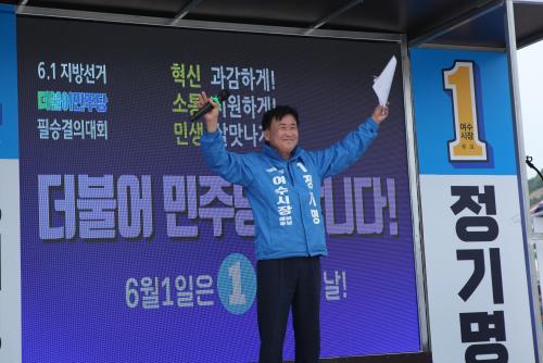 [½Åµ¿¾Æ¹æ¼Û=±è±â³² ±âÀÚ] ´õºÒ¾î¹ÎÁÖ´ç Á¤±â¸í ¿©¼ö½ÃÀå È常¦ ºñ·ÔÇÑ ÁÖöÇö, ±èȸÀç ±¹È¸ÀÇ¿ø, ½Ã¡¤µµÀÇ¿ø µî ¡®¹Î»ýÈĺ¸¡¯µéÀÌ ¿øÆÀÀ¸·Î 6.1 Àü±¹µ¿½Ã Áö¹æ¼±°Å ÇʽÂÀ» °áÀÇÇÏ´Â ÃâÁ¤½ÄÀ» °¡Á³´Ù. ´õºÒ¾î¹ÎÁÖ´ç Á¤±â¸í ¿©¼ö½ÃÀåÈĺ¸ ¼±°Å´ëÃ¥º»ºÎ¿¡ µû¸£¸é ¡¦