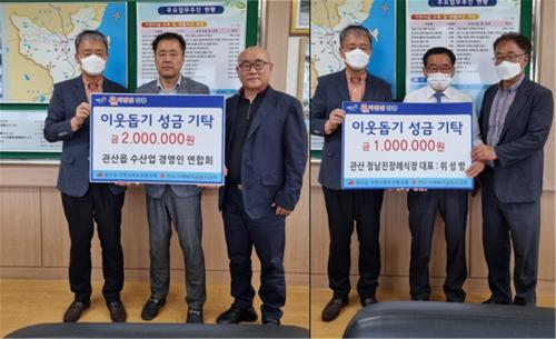 [½Åµ¿¾Æ¹æ¼Û=À̼±Á¾ ±âÀÚ] ÀåÈﱺ °ü»êÀ¾(À¾Àå ±èÁÖÈ£)Àº °ü»êÀ¾ ¼ö»ê¾÷°æ¿µÀÎ ¿¬ÇÕȸ°¡ ¼º±Ý 200¸¸¿øÀ», °ü»ê Á¤³²Áø Àå·Ê½ÄÀåÀÌ ¼º±Ý 100¸¸¿øÀ» ±âŹÇß´Ù°í ¹àÇû´Ù. °ü»êÀ¾ ¼ö»ê¾÷°æ¿µÀÎ ¿¬ÇÕȸ¿Í °ü»ê Á¤³²Áø Àå·Ê½ÄÀåÀº Æò¼Ò¿¡µµ Áö¿ªÀÇ ¼Ò¿ÜµÇ°í ¾î·Á¿î ÀÌ¿ô¡¦