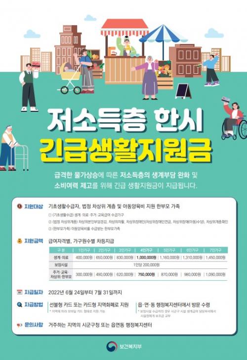 [½Åµ¿¾Æ¹æ¼Û=À̼±Á¾ ±âÀÚ] ¿Ïµµ±ºÀº ±Þ°ÝÇÑ ¹°°¡ »ó½Â¿¡ µû¸¥ Àú¼ÒµæÃþÀÇ »ý°è ºÎ´ã ¿ÏÈ­ ¹× ¼Òºñ ¿©·Â Á¦°í¸¦ À§ÇØ Àú¼ÒµæÃþ Çѽà ±ä±Þ »ýȰÁö¿ø±ÝÀ» Áö¿øÇÑ´Ù. Àú¼ÒµæÃþ Çѽà ±ä±Þ »ýȰÁö¿ø±Ý Áö¿ø ´ë»óÀº 2022³â 5¿ù 29ÀÏ ±âÁØ ±âÃÊ»ýȰ¼ö±ÞÀÚ, ¹ýÁ¤ Â÷»óÀ§ °è¡¦