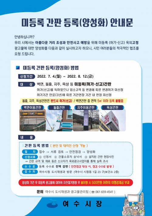 [½Åµ¿¾Æ¹æ¼Û=±è±â³² ±âÀÚ] ¿©¼ö½Ã(½ÃÀå Á¤±â¸í)°¡ 7¿ù 4ÀϺÎÅÍ 8¿ù 12ÀϱîÁö Çã°¡‧½Å°í¸¦ µæÇÏÁö ¾ÊÀº ¹Ìµî·Ï ¿Á¿Ü°íÁ¤±¤°í¹°¿¡ ´ëÇØ ÇѽÃÀû ¾ç¼ºÈ­¸¦ ½Ç½ÃÇÑ´Ù°í ¹àÇû´Ù. ÀÌ¿¡ µû¶ó ¾ç¼ºÈ­ ±â°£ Áß¿¡´Â ºÒÀÌÀÍÇÑ ÇàÁ¤Ã³ºÐ ¾øÀÌ Çã°¡‧½Å°íÇÒ ¼ö ÀÖ´Ù¡¦