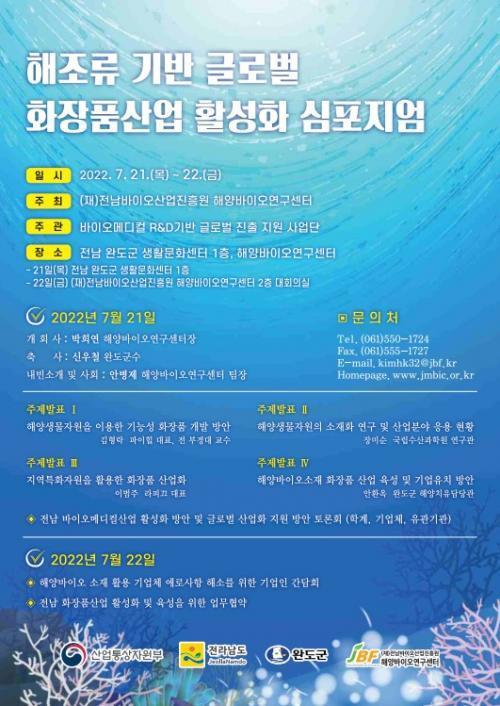 [½Åµ¿¾Æ¹æ¼Û=À̼±Á¾ ±âÀÚ] (Àç)Àü³²¹ÙÀÌ¿À»ê¾÷ÁøÈï¿ø ÇØ¾ç¹ÙÀÌ¿À¿¬±¸¼¾ÅÍ(¼¾ÅÍÀå ¹ÚÈñ¿¬)¿¡¼­´Â 7¿ù 21ÀÏ~22ÀÏ ¾çÀϰ£ ¿Ïµµ±º »ýȰ¹®È­¼¾ÅÍ¿¡¼­ ¡®ÇØÁ¶·ù ±â¹Ý ±Û·Î¹ú È­Àåǰ »ê¾÷ Ȱ¼ºÈ­¸¦ À§ÇÑ ½ÉÆ÷Áö¾ö¡¯À» °³ÃÖÇÑ´Ù. À̹ø ½ÉÆ÷Áö¾öÀº Àü³² µµ³»ÀÇ Ç³ºÎÇÑ Ãµ¡¦