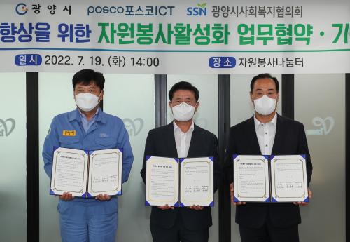 [½Åµ¿¾Æ¹æ¼Û=¹Ú±¤¿Á±âÀÚ] ±¤¾ç½Ã´Â Áö³­ 19ÀÏ ±¤¾ç½ÃÀÚ¿øºÀ»ç³ª´®ÅÍ¿¡¼­ Æ÷½ºÄÚICT, ±¤¾ç½Ã»çȸº¹ÁöÇùÀÇȸ¿Í ÀÚ¿øºÀ»ç Ȱ¼ºÈ­ ¾÷¹«Çù¾à½ÄÀ» °¡Á³´Ù. À̹ø Çù¾à½ÄÀº Á¤ÀÎÈ­ ±¤¾ç½ÃÀå, ±Ç°æÈ¯ Æ÷½ºÄÚICT ±¤¾çEIC »ç¾÷½ÇÀå, ±èÁÖ¾È ±¤¾ç½Ã ÀÚ¿øºÀ»ç´ÜüÇùÀÇȸ ȸÀå µî 1¡¦