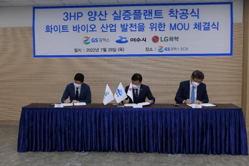 [½Åµ¿¾Æ¹æ¼Û=±è±â³² ±âÀÚ] ¿©¼ö½Ã¿Í GSĮŨ½º, LGÈ­ÇÐÀÌ 28ÀÏ 3HP(ģȯ°æ ¹ÙÀÌ¿ÀÄɹÌÄ® ¼ÒÀç) È­ÀÌÆ®¹ÙÀÌ¿À °øÀå ÅõÀÚÀ¯Ä¡¸¦ À§ÇÑ ¾÷¹«Çù¾àÀ» ü°áÇß´Ù°í ¹àÇû´Ù. GSĮŨ½º ¿©¼ö°øÀå¿¡¼­ ¿­¸° À̳¯ Çù¾à½Ä¿¡´Â Á¤±â¸í ¿©¼ö½ÃÀå, GSĮŨ½º Ç㼼ȫ ´ëÇ¥, LGÈ­ÇÐ ¡¦