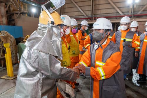 [½Åµ¿¾Æ¹æ¼Û=¹Ú±¤¿Á±âÀÚ] Á¤ÀÎÈ­ ±¤¾ç½ÃÀåÀº Áö³­ 9ÀÏ ¿ÀÈÄ 2½Ã Æ÷½ºÄÚ ±¤¾çÁ¦Ã¶¼Ò ÀÛ¾÷ÇöÀåÀ» ¹æ¹®ÇØ È¤¼­±â¿¡ ¶¡ È긮´Â Á¦Ã¶¼Ò Á÷¿øµéÀ» °Ý·ÁÇß´Ù. ÃÖ±Ù ¿¬ÀÏ ±â·ÏÀûÀÎ ¹«´õÀ§°¡ Áö¼ÓµÊ¿¡ µû¶ó ºÒºµ´õÀ§·Î °í»ýÇÏ´Â ÇöÀå ±Ù·ÎÀڵ鿡°Ô ÈûÀ» ºÒ¾î³Ö¾î ÁÖ±â À§ÇØ Á¦¡¦