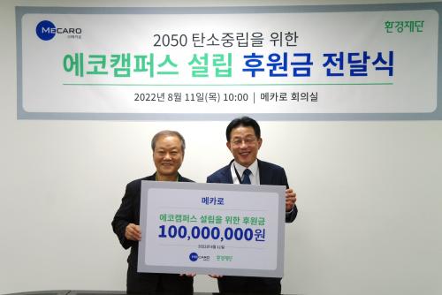 [½Åµ¿¾Æ¹æ¼Û=À̽ŵ¿±âÀÚ] ȯ°æÀç´ÜÀº 11ÀÏ ¸ÞÄ«·Î·ÎºÎÅÍ ÈÄ¿ø±Ý 1¾ï ¿øÀ» Àü´Þ¹Þ¾Ò´Ù. ÈÄ¿ø±ÝÀº 2050 ź¼ÒÁ߸³À» À§ÇÑ ¿¡ÄÚÄ·ÆÛ½º ¼³¸³¿¡ Ȱ¿ëµÈ´Ù. ¿ÞÂʺÎÅÍ È¯°æÀç´Ü ÃÖ¿­ ÀÌ»çÀå°ú ¸ÞÄ«·Î ÀÌÀçÁ¤ ´ëÇ¥°¡ ±â³ä»çÁøÀ» Âï°í ÀÖ´Ù. ȯ°æÀç´Ü(ÀÌ»çÀå ÃÖ¿­)Àº ¸ÞÄ«·Î(´ë¡¦