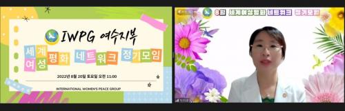 [½Åµ¿¾Æ¹æ¼Û=±è±â³² ±âÀÚ] (»ç)¼¼°è¿©¼ºÆòÈ­±×·ì ¿©¼öÁöºÎ(IWPG, ÁöºÎÀå Â÷¼ºÈñ)´Â 20ÀÏ ¼¼°è¿©¼ºÆòÈ­ ³×Æ®¿öÅ© Á¤±â¸ðÀÓÀ» ¿Â¶óÀÎÀ¸·Î ÁøÇàÇß´Ù. À̹ø Çà»ç´Â IWG ÆòȭȰµ¿ ÇÏÀ̶óÀÌÆ® ¿µ»ó ½ÃûÀ» ½ÃÀÛÀ¸·Î IWPG ÁÖ¿ä»ç¾÷ ¼Ò°³, ¼ÒÅë ÇÁ·Î±×·¥, ¡®ÆòÈ­ÀÇ ¼Ò³à»ó¡¦