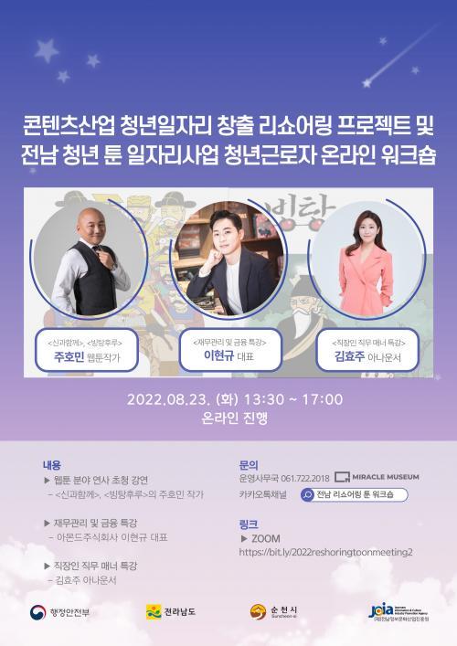 [½Åµ¿¾Æ¹æ¼Û=¹Ú±¤¿Á±âÀÚ] 2022³â ÄÜÅÙÃ÷»ê¾÷ û³âÀÏÀÚ¸® âÃâ ¸®¼î¾î¸µ ÇÁ·ÎÁ§Æ® ¹× Àü³² û³â Å÷ ÀÏÀÚ¸® »ç¾÷(ÀÌÇÏ ¸®¼î¾î¸µ ÇÁ·ÎÁ§Æ® ¹× û³â Å÷ ÀÏÀÚ¸® »ç¾÷)¿¡ Âü¿©Çϴ û³â±Ù·ÎÀÚµéÀ» À§ÇÑ ¿Â¶óÀÎ ¿öÅ©¼óÀÌ 23ÀÏ ÁøÇàµÆ´Ù. ÇàÁ¤¾ÈÀüºÎ, Àü¶ó³²µµ¿Í ¼øÃµ½Ã,¡¦
