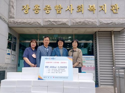 [½Åµ¿¾Æ¹æ¼Û=À̼±Á¾ ±âÀÚ] (»ç)´ëÇÑÇѵ·Çùȸ ÀåÈïÁöºÎ(ÁöºÎÀå ¼­µÎ¼®)´Â 1ÀÏ ¼Ò¿Ü°èÃþ¿¡ Àü´ÞÇØ ´Þ¶ó¸ç Çѵ· 450kg(2,250ÀκÐ)À» ÀåÈﱺ¿¡ ±âŹÇß´Ù. ±âŹ ¹ÞÀº µÅÁö°í±â´Â ÀåÈïÁ¾ÇÕ»çȸº¹Áö°ü, Áö¿ª¾Æµ¿¼¾ÅÍ µî °ü³»»çȸº¹Áö½Ã¼³°ú ¼Ò¿ÜµÈ ÀÌ¿ôµé¿¡ Àü´ÞµÈ´Ù. ¡¦