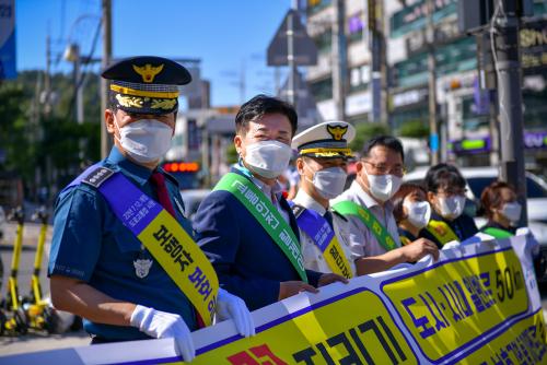 [½Åµ¿¾Æ¹æ¼Û=±è±â³² ±âÀÚ] ¿©¼ö½Ã(½ÃÀå Á¤±â¸í)°¡ 27ÀÏ ¿ÀÀü ºÎ¿µ3´ÜÁö »ç°Å¸® ÀÏ¿ø¿¡¼­ ¡®°í¸¿½À´Ï´Ù!¡¯ ±³Åë¾ÈÀü ¸±·¹ÀÌ ¹Î°üÇù·Â Ä·ÆäÀÎÀ» ½Ç½ÃÇß´Ù. À̳¯ Ä·ÆäÀο¡´Â Á¤±â¸í ¿©¼ö½ÃÀå°ú Á¤¼º·Ï ¿©¼ö°æÂû¼­ÀåÀ» ºñ·ÔÇØ ¿©¼ö¼Ò¹æ¼­, ¾ÈÀüº¸¾È°ü, ³ì»ö¾î¸Ó´Ïȸ,¡¦