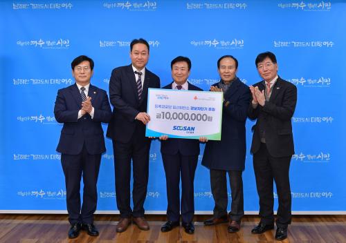 [½Åµ¿¾Æ¹æ¼Û=±è±â³² ±âÀÚ] ¿©¼ö½Ã(½ÃÀå Á¤±â¸í)´Â ¢ß¼ö»êÈ¨ÅØÀÌ °æ·Î´ç ¾î¸£½ÅµéÀÇ ¾ÈÀüÀ» À§ÇØ 1õ¸¸ ¿ø »ó´çÀÇ ÀÏ»êȭź¼Ò °æº¸Â÷´Ü±â 50´ë¸¦ Áö¿øÇß´Ù°í ¹àÇû´Ù. 7ÀÏ ¿©¼ö½ÃÀå½Ç¿¡¼­ ¿­¸° Àü´Þ½Ä¿¡´Â Á¤±â¸í ½ÃÀå°ú ÇÏ¿µÁ¦ ¢ß¼ö»êÈ¨ÅØ ºÎ»çÀå, ¼ºÁØ±Ô Àü¹«À̻硦
