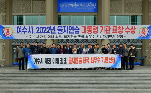 [½Åµ¿¾Æ¹æ¼Û=±è±â³² ±âÀÚ] ¿©¼ö½Ã(½ÃÀå Á¤±â¸í)°¡ 2022³â À»Áö¿¬½À Æò°¡¿¡¼­ Àü±¹ ÃÖ¿ì¼ö±â°üÀ¸·Î ¼±Á¤µÅ ´ëÅë·É ǥâÀ» ¼ö»óÇÑ´Ù. À»Áö¿¬½À ¡®´ëÅë·É ǥ⡯Àº ¿©¼ö½Ã °³Ã» ÀÌ·¡ ÃÖÃÊÀÌ´Ù. Äڷγª19·Î 3³â ¸¸¿¡ ¿­¸° 2022³â À»Áö¿¬½ÀÀº Áö³­ 8¿ù 22ÀϺÎÅÍ 25ÀÏ¡¦