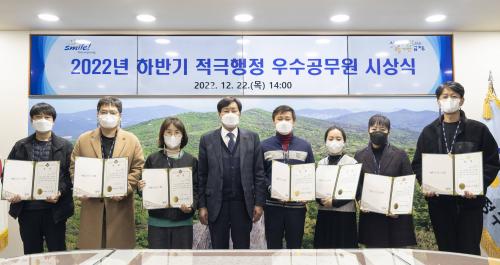 [½Åµ¿¾Æ¹æ¼Û=º¯ÀçÈ£ ±âÀÚ] ºÎ»ê ±ÝÁ¤±¸(±¸Ã»Àå ±èÀçÀ±)´Â Áö³­ 22ÀÏ Ã¢ÀÇÀûÀ̰í Àü¹®ÀûÀÎ ¾÷¹« ÃßÁøÀ¸·Î Àû±ØÇàÁ¤ °øÁ÷¹®È­ È®»ê°ú ±¸¹Î ÆíÀÍ ÁõÁø¿¡ ±â¿©ÇÑ 2022³â ÇϹݱâ Àû±ØÇàÁ¤ ¿ì¼ö°ø¹«¿ø 7¸íÀ» ¼±¹ßÇß´Ù°í ¹àÇû´Ù. ±ÝÁ¤±¸´Â °¢ ºÎ¼­¿¡¼­ ÃßõÇÑ Àû±ØÇàÁ¤ »ç·Ê¡¦