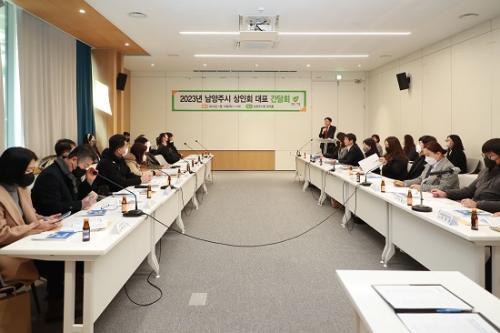 [½Åµ¿¾Æ¹æ¼Û °æÀÎ=À̼¼¿µ ±âÀÚ]³²¾çÁÖ½Ã(½ÃÀå ÁÖ±¤´ö)´Â 2023³â »õÇØ¸¦ ¸Â¾Æ Áö³­ 12ÀÏ ½Ãû ¿µ¼®È¦¿¡¼­ Áö¿ª ³» »óÀÎȸ ´ëÇ¥, ¼Ò»ó°øÀνÃÀåÁøÈï°ø´Ü ±¸¸®¼¾ÅÍ °ü°èÀÚ, °ø¹«¿ø µî 30¿© ¸íÀÌ Âü¼®ÇÑ °¡¿îµ¥ ¼Ò»ó°øÀÎ Áö¿ø ¹æ¾È¿¡ ´ëÇÑ °£´ãȸ¸¦ °³ÃÖÇß´Ù. À̹ø °£´ãȸ¡¦