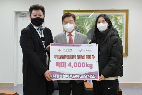 [½Åµ¿¾Æ¹æ¼Û=À̽ŵ¿±âÀÚ] µ¿´ë¹®±¸Ã»Àå ÀÌÇÊÇü)´Â ¼³ ¸íÀýÀ» ¾ÕµÐ 17ÀÏ ¿ÀÀü 9½Ã 30ºÐ, °ü³» ÁÖ²Ù¹Ì °ñ¸ñÀ» ´ëÇ¥Çϰí ÀÖ´Â ³ªÁ¤¼øÇÒ¸ÅÂÞ²Ù¹Ì(´ëÇ¥ ³ª¼ºÈ£)¿¡¼­ ¾î·Á¿î ÀÌ¿ôÀ» À§ÇØ 1,000¿©¸¸ ¿ø »ó´çÀÇ ½Ò 400Æ÷(10kg/Æ÷)¸¦ ±âŹÇß´Ù°í ¹àÇû´Ù. ±âʽÄÀº ±¸Ã» 5Ãþ ±¸¡¦