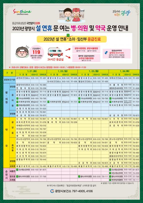 [½Åµ¿¾Æ¹æ¼Û= ¹Ú±¤¿Á ±âÀÚ] ±¤¾ç½Ã´Â ¼³ ¿¬ÈÞ ±â°£ ȯÀÚ Áø·á °ø¹é°ú Áö¿ª Äڷγª19 È®»ê ¹æÁö¸¦ À§ÇØ ¿À´Â 1¿ù 21ÀϺÎÅÍ 24ÀϱîÁö 4Àϰ£ ¼Ò¾Æ¡¤ÀÓ»êºÎ ¹× ÀÀ±ÞȯÀÚ¿¡ ´ëÇÑ Áø·á ´ëÃ¥À» ¸¶·ÃÇÑ´Ù. À̸¦ À§ÇØ º¸°Ç¼Ò »óȲ½ÇÀ» ¿î¿µÇϰí, ÀÇ·á±â°ü »óȲ ¸ð´ÏÅ͸µ°ú ¹®¡¦