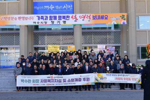 [½Åµ¿¾Æ¹æ¼Û=±èÀç¼± ±âÀÚ] ±âºÎõ»ç ¹Ú¼ö°ü ¢ßYC-TEC ȸÀåÀÌ 2023³â ¼³ ¸íÀý¿¡µµ °íÇâ ¿©¼ö¸¦ À§ÇØ 1¾ï 5õ¸¸ ¿øÀÇ Åë Å« ±âºÎ¸¦ À̾´Ù. ¿©¼ö½Ã(½ÃÀå Á¤±â¸í)¿¡ µû¸£¸é 17ÀÏ ¿ÀÈÄ ½ÃÀå½Ç¿¡¼­ ¼º±Ý Àü´Þ½ÄÀÌ ¿­·È´Ù. À̳¯ Àü´Þ½Ä¿¡´Â ¹Ú¼ö°ü ȸÀåÀ» ´ë½ÅÇØ (¡¦