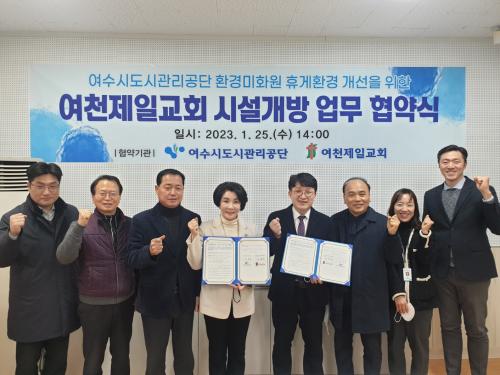 [½Åµ¿¾Æ¹æ¼Û=±è±â³² ±âÀÚ] ¿©¼ö½Ãµµ½Ã°ü¸®°ø´Ü(ÀÌ»çÀå ±èÀ¯È­, ÀÌÇϰø´Ü)°ú ¿©ÃµÁ¦Àϱ³È¸(À§ÀÓ¸ñ»ç ±èµ¿½Ä)Àº ¿©¼ö½Ãµµ½Ã°ü¸®°ø´Ü ȯ°æ¹ÌÈ­¿øÀÇ ÈÞ°Ô È¯°æ °³¼±À» À§ÇØ 1¿ù 25ÀÏ ¿©ÃµÁ¦Àϱ³È¸ ½Ã¼³°³¹æ ¾÷¹« Çù¾à½ÄÀ» °¡Á³´Ù. ¿©¼ö½Ãµµ½Ã°ü¸®°ø´ÜÀº 2013³âºÎÅÍ ¡¦