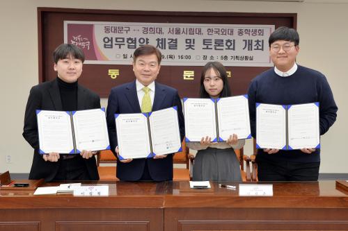 [½Åµ¿¾Æ¹æ¼Û µ¿´ë¹®=À̽ŵ¿±âÀÚ] µ¿´ë¹®±¸Ã»Àå ÀÌÇÊÇüÀº û³âÀÌ ¸ðÀÌ´Â µ¿´ë¹®±¸¡¯ ±¸ÇöÀ» À§ÇØ 9ÀÏ ¿ÀÈÄ °æÈñ´ëÇб³, ¼­¿ï½Ã¸³´ëÇб³, Çѱ¹¿Ü±¹¾î´ëÇб³ 3°³ ´ëÇÐÀÇ ÃÑÇлýȸ¿Í ¾÷¹«Çù¾àÀ» ü°áÇß´Ù. À̹ø ¾÷¹«Çù¾àÀº Á¤Ã¥ ´ë»óÀÚÀΠû³âµéÀÌ ±¸¿¡¼­ ÃßÁøÇϴ û³â ¡¦