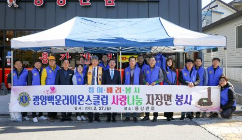 [½Åµ¿¾Æ¹æ¼Û= ¹Ú±¤¿Á ±âÀÚ] ±¤¾ç¹é¿î¶óÀ̿½ºÅ¬·´(ȸÀå ¹ÚÁ¤±Ù)Àº 27ÀÏ ¿ë°­¸®¿¡ °ÅÁÖÇÏ´Â °æ·Î´ç ¾î¸£½ÅµéÀ» ´ë»óÀ¸·Î ÀÚÀå¸é ³ª´® ºÀ»çȰµ¿À» ½Ç½ÃÇß´Ù°í ¹àÇû´Ù. À̹ø ÀÚÀå¸é ³ª´® ºÀ»ç´Â ±¤¾ç¹é¿î¶óÀ̿½ºÅ¬·´ ȸ¿ø 30¸íÀÌ Âü¿©ÇÑ °¡¿îµ¥ ¿ë°­¸® ¼ÒÀç °æ·Î´ç ¾î¡¦