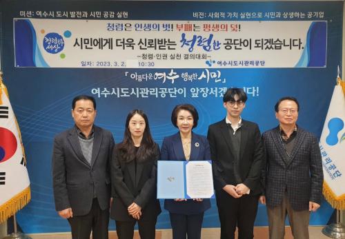 [½Åµ¿¾Æ¹æ¼Û=±è±â³² ±âÀÚ] ¿©¼ö½Ãµµ½Ã°ü¸®°ø´ÜÀº(ÀÌ»çÀå ±èÀ¯È­) 3¿ù 2ÀÏ º»ºÎ ȸÀǽǿ¡¼­ 2023³â û·Å¡¤À뱂 ½Çõ °áÀÇ´ëȸ¸¦ ¿­¾ú´Ù. À̹ø °áÀÇ´ëȸ´Â ÀÌ»çÀåºÎÅÍ Àü Á÷¿øµéÀÌ ¼Ö¼±¼ö¹üÇϴ û·Å ¹× ÀαÇÁ¸ÁßÀÇ Á¶Á÷¹®È­ È®»êÀ» À§ÇÏ¿© ¸¶·ÃµÇ¾ú°í, û·ÅÇÑ °øÁ÷¡¦