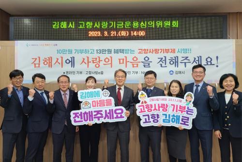 [½Åµ¿¾Æ¹æ¼Û´º½º=½Åµ¿È£±âÀÚ] ±èÇØ½Ã´Â 21ÀÏ ¿ÀÈÄ 2½Ã ½Ãû Çູ¹Î¿øÃ»»ç 365ȸÀǽǿ¡¼­ ¡®±èÇØ½Ã °íÇâ»ç¶û±â±Ý¿î¿ë½ÉÀÇÀ§¿øÈ¸¡¯ À§¿ø À§Ã˽İú ÇÔ²² ù ȸÀǸ¦ °³ÃÖÇß½À´Ï´Ù. ½ÉÀÇÀ§¿øÈ¸´Â ±â±Ý °ü·Ã Àü¹®°¡ µî 9¸íÀ» À§¿øÀ¸·Î À§ÃËÇßÀ¸¸ç °íÇâ»ç¶û±âºÎ±Ý ¼öÀÔÀ» ¡¦